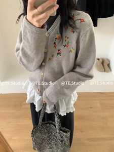 法式复古重工绣花别致针织开衫2025秋季高级感漂亮软糯毛衣外套女