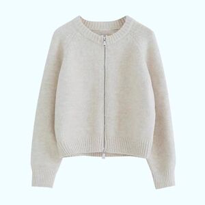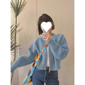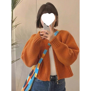 针织开衫毛衣外套女秋季新年穿搭红色宽松外搭休闲拉链上衣潮