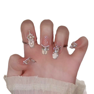 花间容【翩翩舞】纯手工穿戴甲猫眼锆石钻宝石光疗软甲钻美甲合