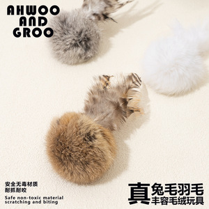 真兔毛球丰容玩具宠物丰荣猫玩具猫咪自嗨解闷小猫羽毛逗猫静音大