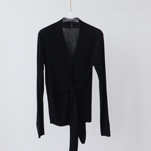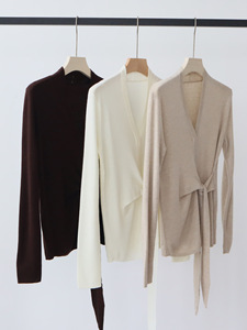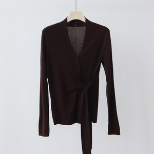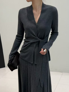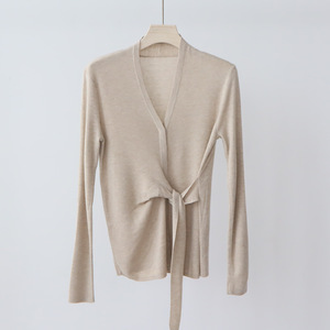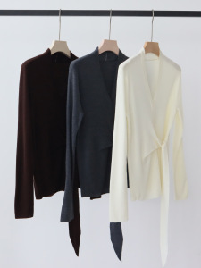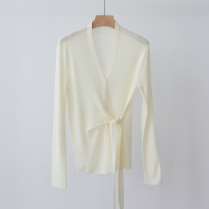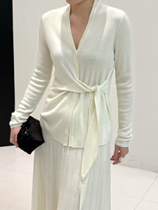 韩系早秋穿搭羊绒羊毛羊绒混纺针织衫开衫设计感收腰飘带薄款上衣