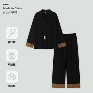 睡衣女士春秋季撞色长袖开衫高级感家居服大码黑色长裤套装可外穿