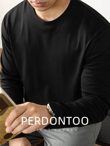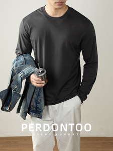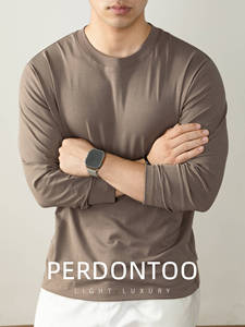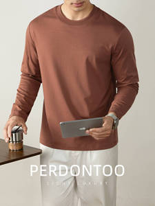 “顶奢系列” 80S高支液氨丝光莱赛尔T恤长袖男士纯色打底体恤衫