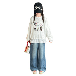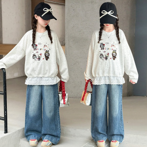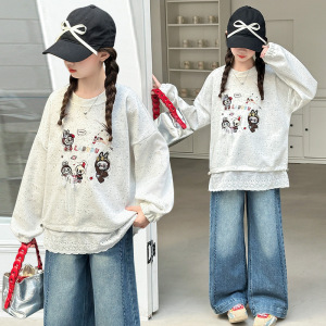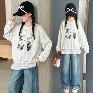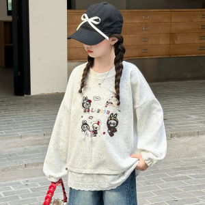 女童卫衣秋装2025新款儿童韩系中大童时髦花边拼接休闲风上衣跨境