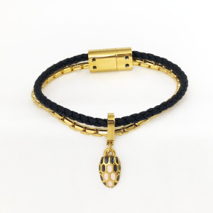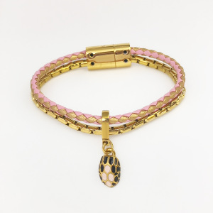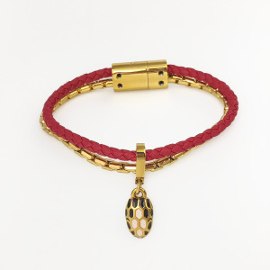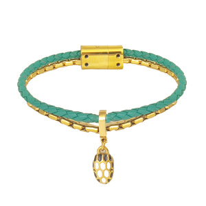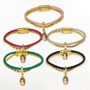 欧美跨境彩色珐琅滴油蛇头手镯不掉色蛇头小牛皮编织红绳双层手链