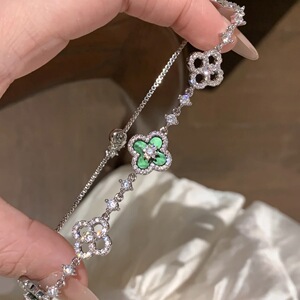 锆石菱形镂空花朵手链轻奢高级感手环时尚精致气质个性百搭手饰女