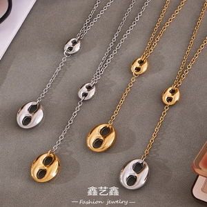 鑫艺鑫欧美个性独特叠戴Y字猪鼻子锁骨项链气质轻奢choker颈链女