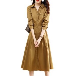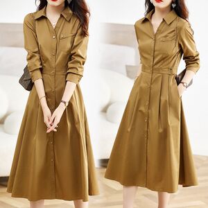 M5N春秋过膝衬衫裙新款女时尚气质收腰显瘦洋气长袖衬衫连衣裙子