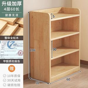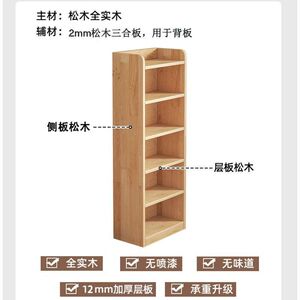 纯实木书架落地置物架一体靠墙柜子储物柜儿童学生家用书柜收纳柜