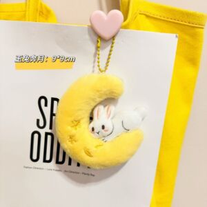 中秋节日元素月饼挂件卡通毛绒玩偶包包配饰月亮月兔钥匙扣挂饰