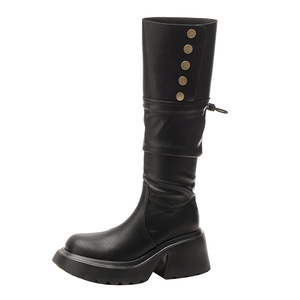 小个子增高褶皱堆堆靴女厚底两穿长筒靴不过膝粗跟骑士靴子