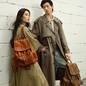 裘真植鞣羊皮自游双肩包旅游轻便休闲复古真皮大容量背包男女同款