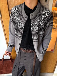 费尔岛提花针织衫男女款秋季美式复古高级感痞帅长袖毛衣开衫外套