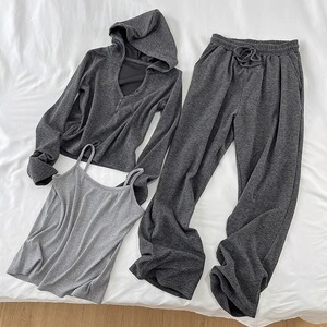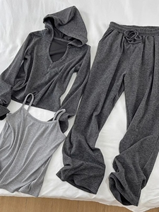 盐系穿搭三件套女2025秋季小个子洋气连帽卫衣背心休闲阔腿裤套装