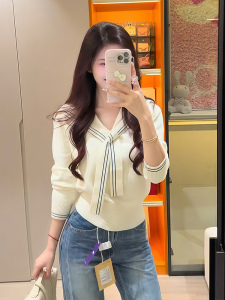 海军领长袖毛衣女春秋新款韩系学院风修身短款收腰百搭时尚针织衫