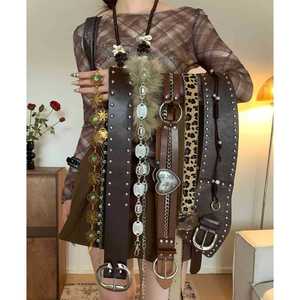 复古民族风铆钉腰带女小众西部风宽版腰封配裙子牛仔裤带腰链配饰