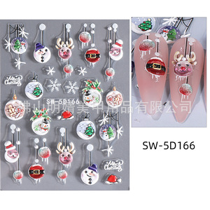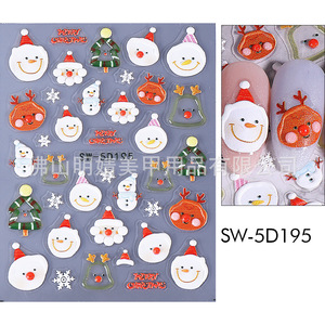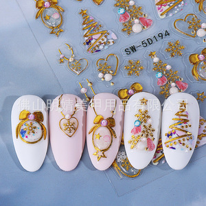 圣诞浮雕新款美甲贴纸 ins风果冻立体圣诞老人雪人圣诞树灯球贴纸