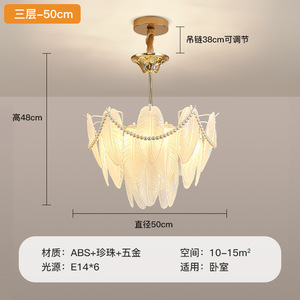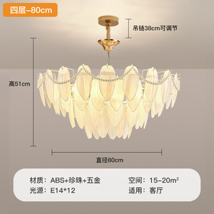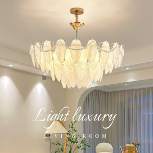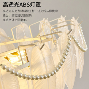 法式奶油风吊灯轻奢羽毛珍珠ins网红创意大气后现代客厅卧室灯具