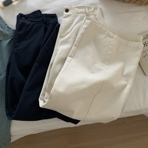 日杂风宽松高腰阔腿工装裤女卡其色弯刀裤秋冬韩版显瘦百搭拖地裤