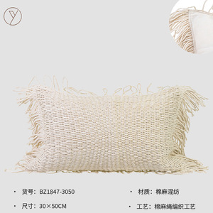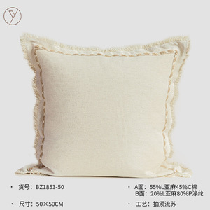 米色系自然侘寂抽须毛边棉麻抱枕亚麻沙发腰枕床上装饰靠垫靠包