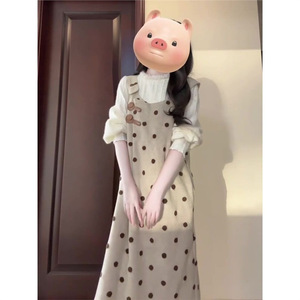 小个子温柔内搭打底衫女学生春季设计感波点背心裙气质显瘦两件套
