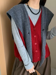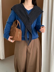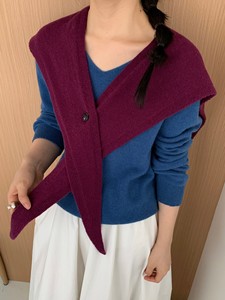 秋冬纯羊毛披肩女韩系慵懒感时髦简约外搭纯色交叉小坎肩衬衫披肩