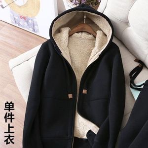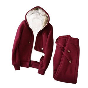 运动休闲套装女冬款加绒加厚简约纯色显瘦长袖连帽短外套运动裤潮
