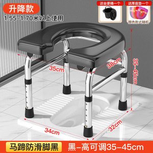 黑色35-45cm-U款丨升级可调节高度+加厚坐垫+便桶