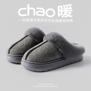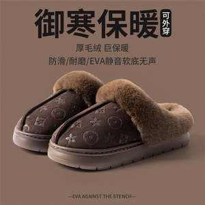 大牌居家男女情侣仿皮防水室内外防滑家用保暖拖鞋软底加绒棉拖冬