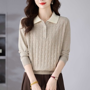 春秋季新款妈妈时尚洋气宽松小个子上衣卫衣套头针织半开翻领毛衣