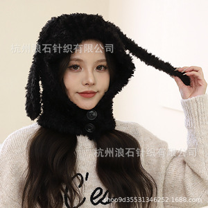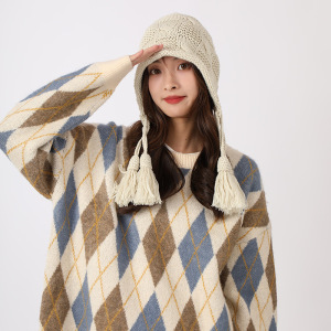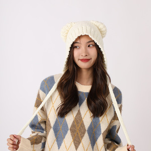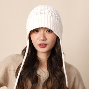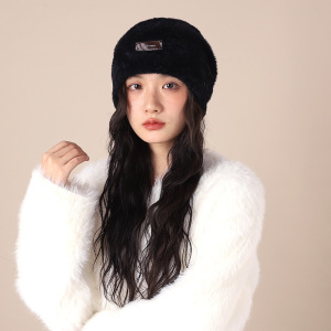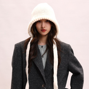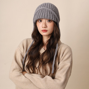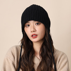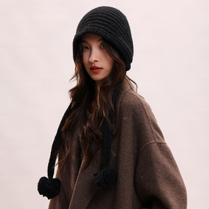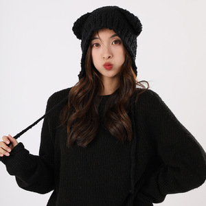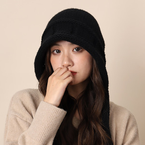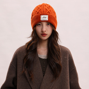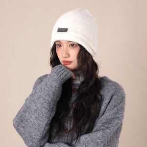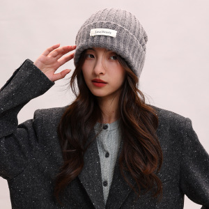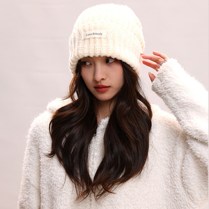 大头围针织帽子女冬季宽松纯色堆堆帽潮时尚显脸小保暖护耳毛线帽