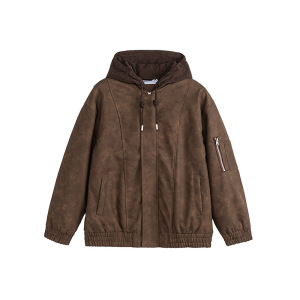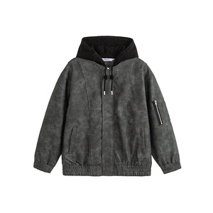 复古潮牌可拆卸连帽PU皮夹克男女秋季新款美拉德做旧休闲外套