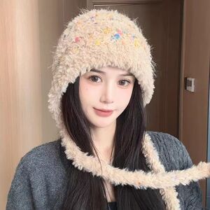 韩版ins彩色糖豆毛绒针织帽女秋冬保暖护耳毛线帽百搭显脸小帽子