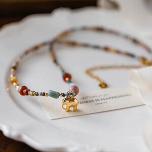 多巴胺彩色串珠小象吊坠项链女款复古轻奢小众气质锁骨链颈链配饰
