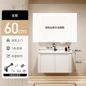 60CM陶瓷盆柜+圆弧全封智能镜柜【带纸巾抽】 黑猫龙头