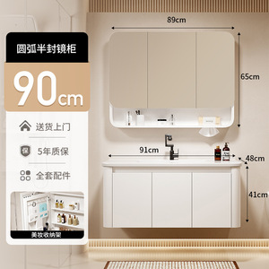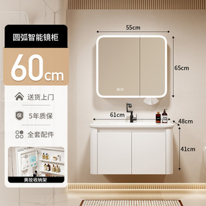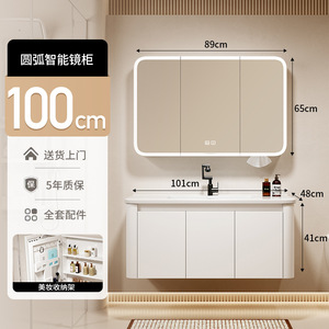 挂墙圆弧浴室柜组合卫生间洗手洗脸一体陶瓷盆洗漱台美妆智能镜柜