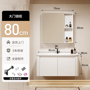 80CM陶瓷盆柜+圆弧全封镜柜【带纸巾抽】 黑猫龙头