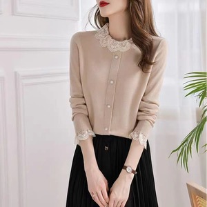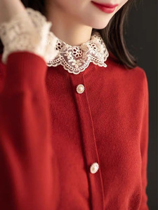 气质轻奢蕾丝花边领毛衣打底上衣秋冬新款修身显瘦内搭打底针织衫