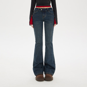 橙绢女装#低腰微喇牛仔裤女秋季复古怀旧修身弹力显瘦辣妹喇叭裤