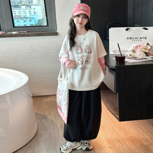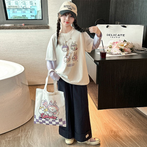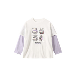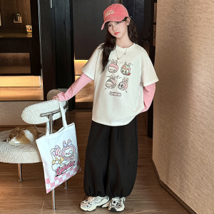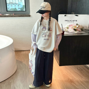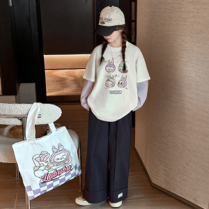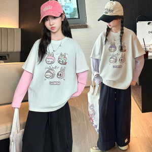 跨境女童秋季打底衫2025秋装新款儿童纯棉假两件卡通拉布布打底衫