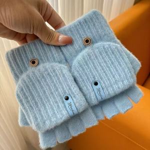 毛绒翻盖手套男女露半指学生写字保暖加厚冬季针织防寒骑行可触屏