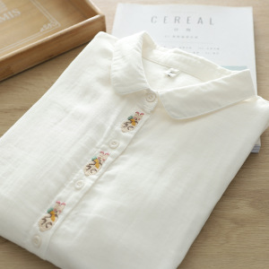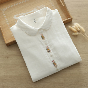 复古文艺刺绣双层棉纱长袖白衬衫女 2025秋装新款减龄显瘦衬衣