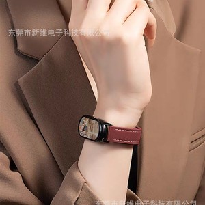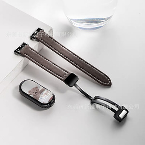 新款皮质牛纹磁吸扣适用小米10手环表带高级感小米手环8/9现货发