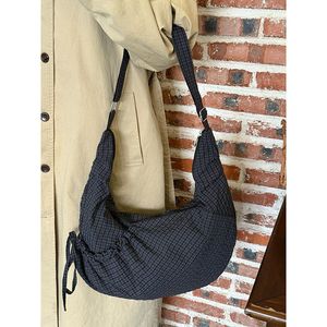 韩系ins格纹褶皱云朵包新款复古大容量单肩斜挎包小众百搭托特包