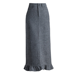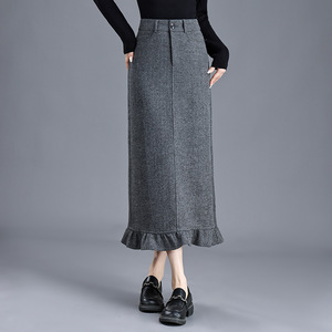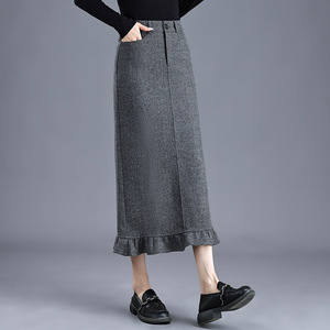 灰色开叉直筒鱼尾裙女秋季2025新款高腰显瘦包臀半身裙通勤中长裙