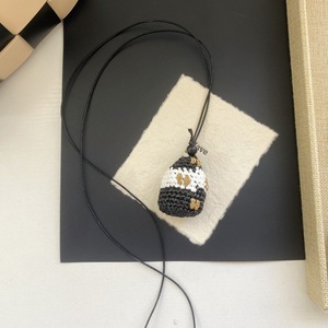 手工PP草编制吊坠项链复古小众设计藏香柏御守锦囊气质长款毛衣链