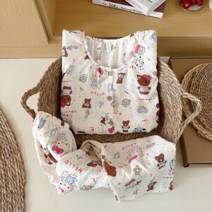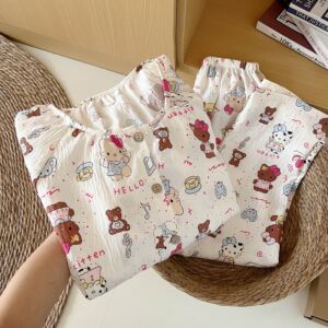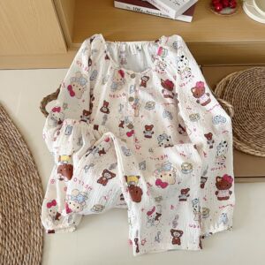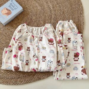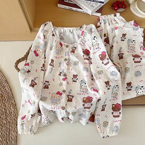 跨境越南批发云朵棉KT小熊睡衣女春秋长袖圆领开衫卡通高级家居服