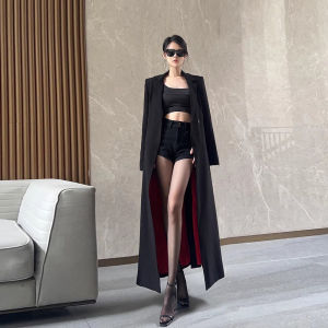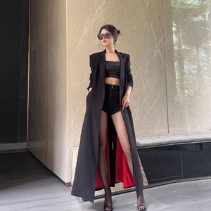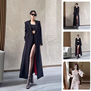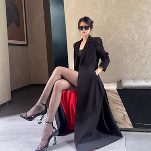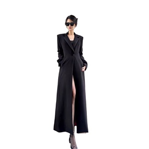 黑色感简约气质时尚长款西装风衣外套女秋季收腰开叉大衣外套