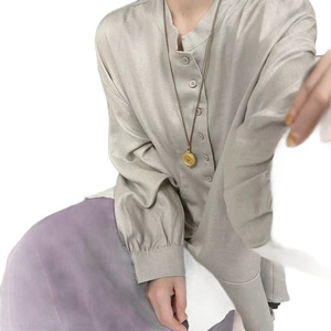 2025文艺复古女衬衫秋季 新款宽松百搭中长款亚麻衬衫女式