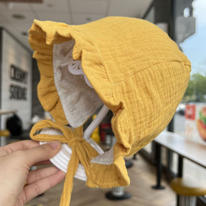 黄色-荷叶边宫廷帽+头围39-44cm/仅供参考0-12个月+均码(以头围为准)绑绳